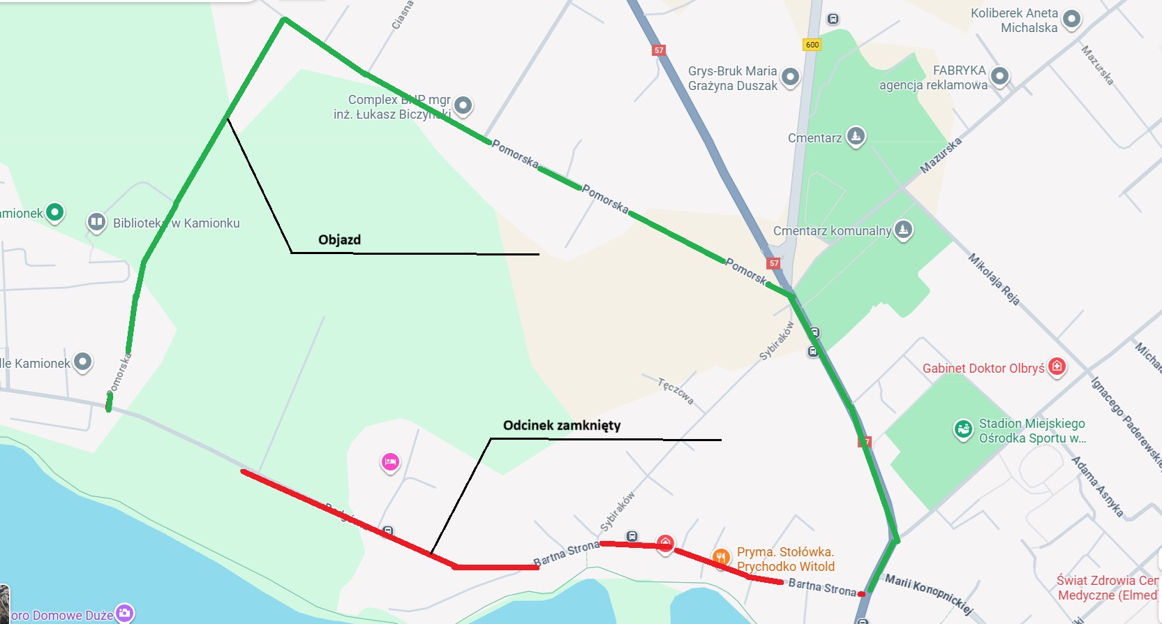W załączeniu mapka z zamknięciem ul. Podgórnej i Bartnej Strony w Szczytnie oraz wyznaczonym objazdem.