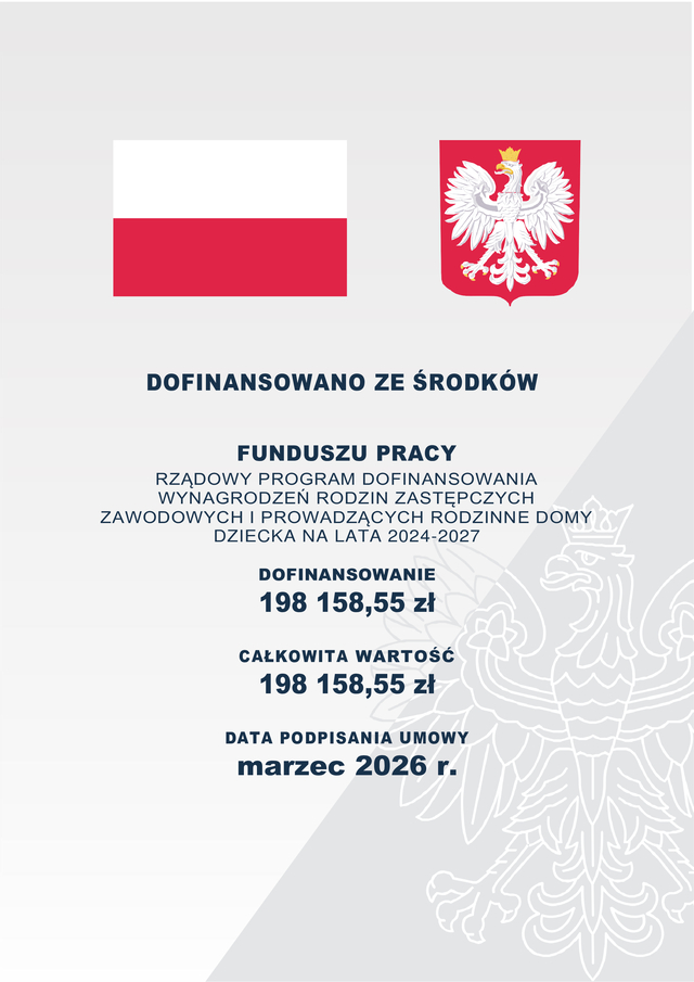 Powiat Szczycieński realizuje Rządowy Program „Dofinansowanie wynagrodzeń pracowników jednostek wspierania rodziny i systemu pieczy zastępczej w postaci dodatku motywacyjnego na lata 2024-2027” .